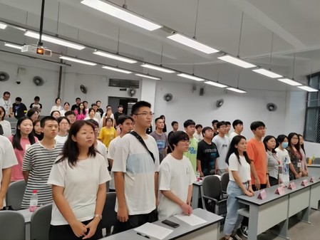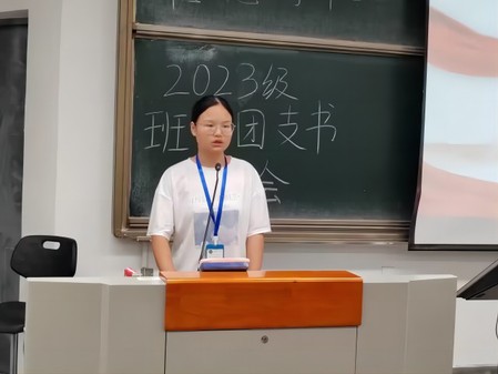伴随着众人齐唱完团歌,本届班团大会正式开始。会上,邓燕强调了班级的团结合作、互助共进的重要性,鼓励同学们勇于担当,不断提高自身素质,为班级的发展贡献自己的力量。紧接着,组织建设部部长陈雪详细讲解了各个班级团支部在进行工作时需要注意的问题,同时她就团组织生活、团青考察和团费缴纳等相关工作向23级各班班长、团支书进行介绍。