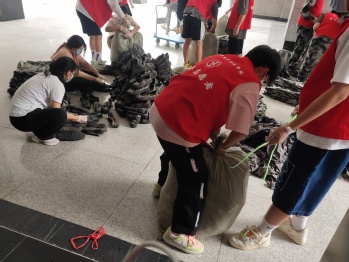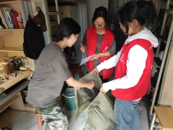 28日活动当天,志愿者们积极行动起来,通过上门扫寝,询问同学们捐赠军训服的意愿,流动回收大家的军训服。除了电气学院的同学捐赠了军训服之外,其他学院的同学也主动捐赠了自己的军训服。