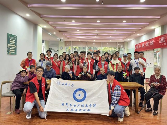 1029日下午两点,电气学院志愿者们在西华大学西门集合前往青孝颐养中心。此次活动旨在号召同学们关爱老人们,增加志愿者们敬老的美德