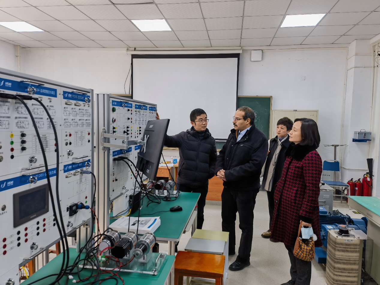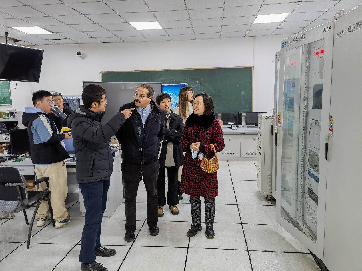 我院雷霞院长和阎铁生副院长热情接待了塔哈教授,陪同参观了学院专业实验中心和创新实验室,并向塔哈教授介绍了实验室设备和运行情况,实验室人才培养情况和实验室近几年的科研和竞赛成果。