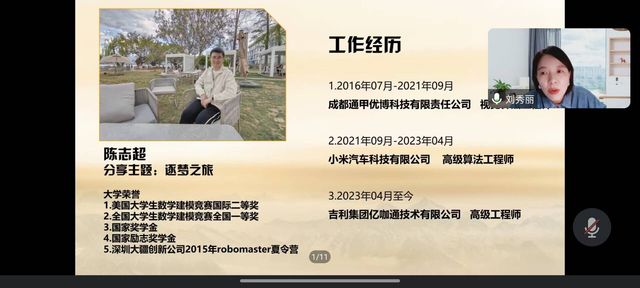 陈志超校友从伟德国际1946毕业后就职于成都通甲优博科技有限公司,目前就职吉利集团亿咖通技术有限公司高级工程师。本次分享以“逐梦之旅”为主题,从大学经历入手,分享了自身为工程师目标奋斗的过程,其中包括初入大学的迷茫、准备竞赛的艰辛、毕业后工程师升级之路。通过陈志超学长的分享,参加的同学们认识到了坚持终身学习的重要性并对未来职业规划有了更清晰的脉络。