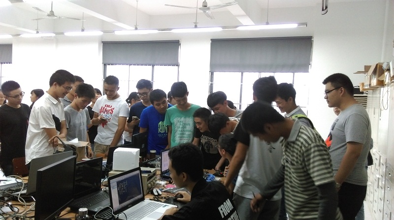 最后,在学长的带领下,新生依次参观了创新实验室和飞思卡尔实验室。通过对实验室的成品和技术的详尽讲解,学长们现场实际操作,新生们对电气协会和飞思卡尔实验室产生了浓厚的兴趣。