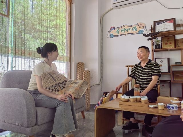7月13日,实践队来到青神县竹福竹艺文化有限公司,拜访了青神竹编工艺非物质文化遗产代表性传承人张德明先生并就“以竹代塑”主题进行了采访。