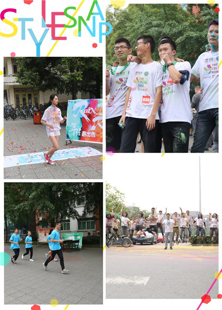 身穿彩虹衣服的同学们,在听完李烽主席的讲话并宣布活动开始,开始了激昂的运动步伐。沿着西华大学,一路上伴随着同学们的加油呐喊,沿途的风景似乎也在为他们吹着激昂的号角。