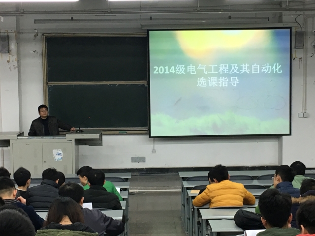 张老师提供的14级电气专业的选课指导,在提及专业课选课同时,注重强调选修课的选择侧重点。他要求同学们注重选修门数与学期间的平衡。做到有所取舍,有所侧重。在讲解完选课注意事项后,为同学留出答疑时间,回答相关选课问题。