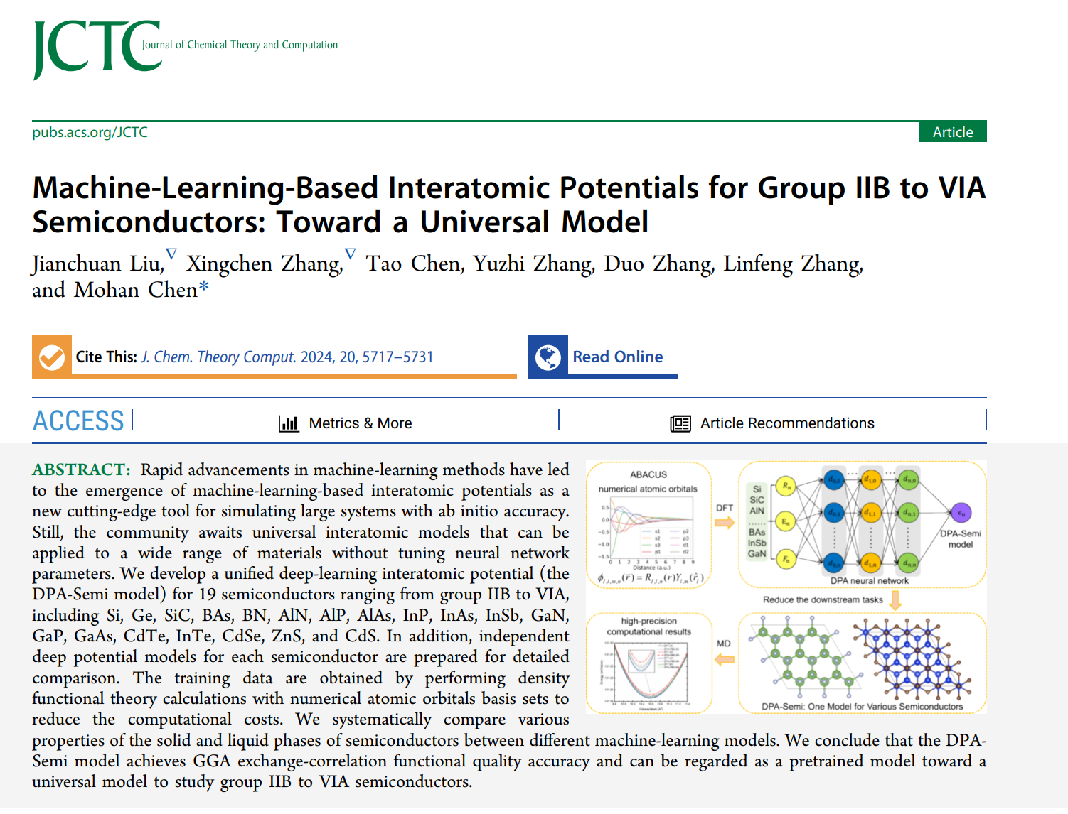 我校伟德国际1946刘建川老师在国际知名期刊《Journal of Chemical Theory and Computation》(中科院一区TOP)发表关于半导体器件仿真模拟的研究论文(J. Chem. Theory Comput. 2024, 20, 13, 5717)。该论文是刘建川老师作为第一作者和北京大学工学院陈墨涵研究员进行深入合作下的半导体器件方向的高水平研究成果。该研究工作受到国家自然科学优秀青年基金的资助。