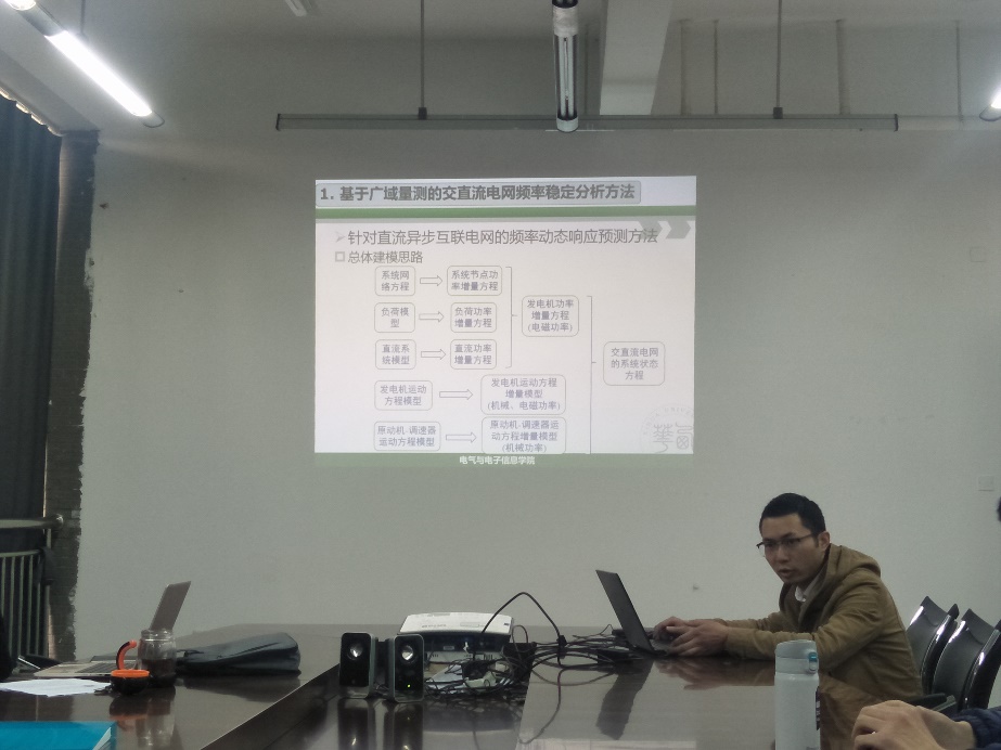 胡益老师从他的报告主题“交直流电网频率稳定分析与控制方法研究”出发,讲述了现代电网已经形成了交直流混联电网格局,直流输电使得大电网被逐渐分割,系统备用容量减少、惯性减小,此时由大扰动引起的系统频率稳定问题将会更加显著。本报告围绕现代电网交直流混联运行特性,阐述了适用于复杂交直流电网的频率稳定分析与控制新方法。