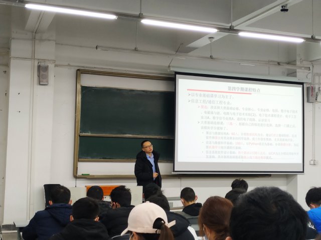 信息工程系主任郭奕老师为信息工程、通信工程专业的同学详细介绍了电子信息类专业的学科规划以及下学期课程的特点,并从大类基础必修课程、专业核心课程、专业必修课程三个方面为同学们提出选课建议。