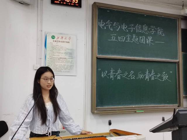 团委书记邓燕在讲话中对全院青年学子提出多点期望:坚定理想信念,做五四精神的传承者;练就过硬本领,做知行合一的实干家;勇于创新创造,做时代潮流的弄潮儿。她特别强调:"希望同学们珍惜大学时光,在服务同学中增长才干,在社会实践中锤炼品格,让青春在为祖国、为人民的奉献中焕发光彩。"邓书记的讲话情真意切,赢得了在场同学的阵阵掌声。