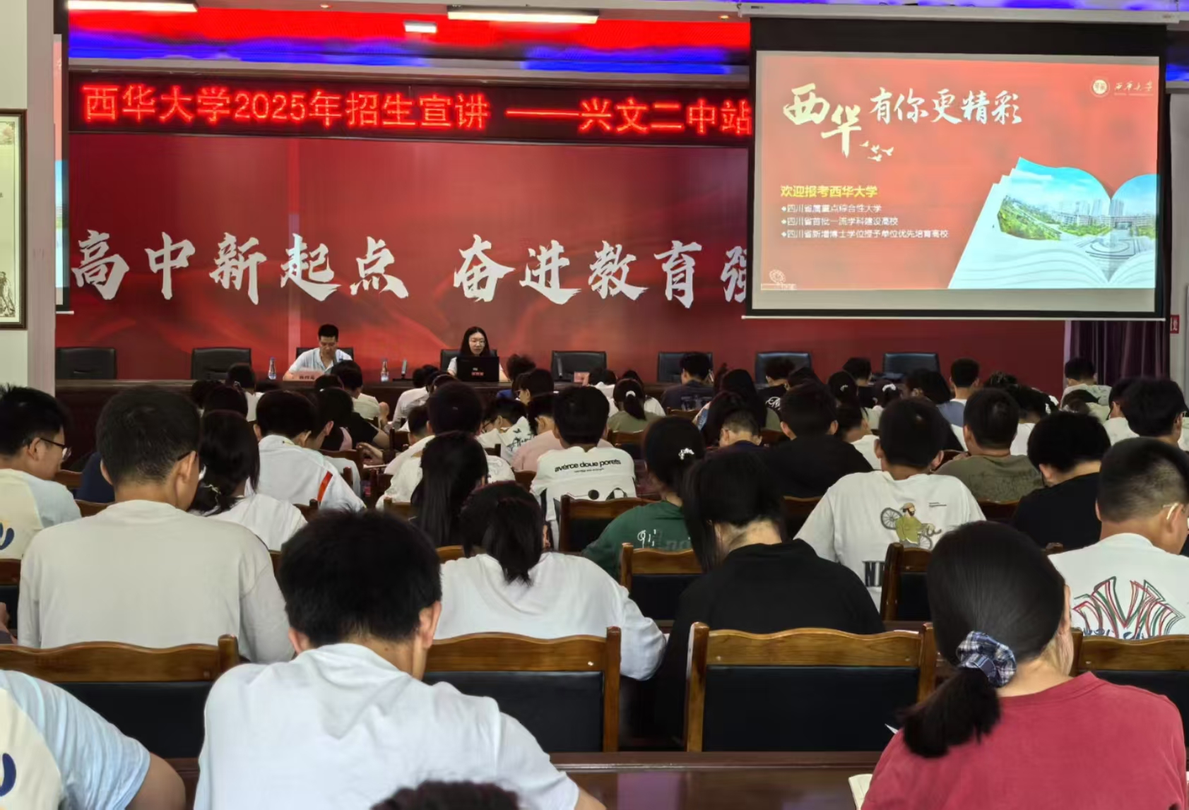 5月19-20日,伟德国际1946骨干教师李琪瑞、辅导员方芳赴四川省宜宾市长宁中学校、兴文二中开展本科生招生宣传工作。李琪瑞老师向到场的500余名同学介绍了西华大学的文化底蕴、办学历史、培养理念、专业优势等,既拓展了学生视野,又激发了学生学习热情,使得同学们对西华大学和电气与电子信息学院有了更加深入和具体的认识。宣讲结束后,宣讲老师就同学们关心的问题进行了针对性回答。
