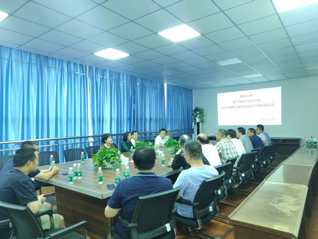 2025年7月12日,伟德国际1946,Bevictor伟德,伟德官网(原四川工业学院电子信息与电气工程系)2002级硕士研究生毕业20周年座谈会在第六教学楼6A301会议室举行。学院院长雷霞、导师代表何建平、王军、董秀成,以及20余位校友齐聚一堂,以“廿载同行·电亮未来”为主题,共叙师生情谊,共谋发展新篇。