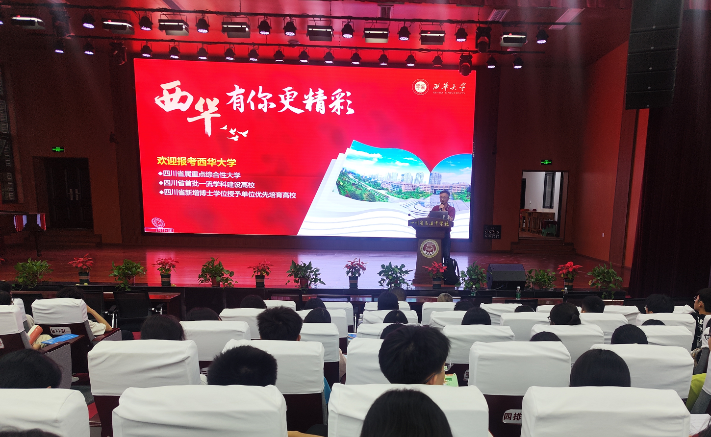 9月25日,学院党委副书记郭忠林、副教授胡宏平率招生宣讲团走进宜宾高县中学,开展2025年招生宣传暨专业介绍会。高县中学副校长陈建红、招办主任欧贵良、副主任李权及300余名高三学生参与活动,现场气氛热烈。宣讲会以西华大学宣传片拉开序幕。郭忠林“西华有你更精彩”为题从办学历史、人才培养、学科特色及就业前景等方面,全面展示我校办学特色和人才培养优势。他强调,西华大学始终以服务地方经济为导向,培养了大批扎根四川、贡献社会的优秀人才,并鼓励同学们树立远大目标,“选择西华,不仅是选择一所大学,更是选择与时代同行、与科技共进的未来!”