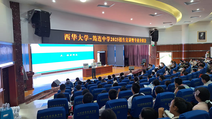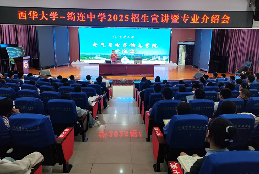 9月26日,学院党委副书记郭忠林、副教授胡宏平率招生宣讲团走进宜宾筠连中学,开展2025年招生宣传暨专业介绍会。筠连中学高三300余名学生参与活动。此次宣讲不仅为高三学子提供了科学填报志愿的指导,更激发了他们对未来发展的信心与期待。宣讲会在西华大学宣传片的精彩画面中拉开序幕。郭忠林从学校历史沿革、师资力量、学科建设、科研成果及就业前景等方面展开系统介绍。他强调,西华大学作为四川省属重点综合性大学,始终以“求是、明德、卓越”为校训,培养了大批扎根四川、服务国家的创新型人才。近年来,学校在智能制造、新能源、电子信息等领域取得突破性成果,毕业生就业率和就业质量连续多年位居全省前列,成为众多学子向往的高等学府。