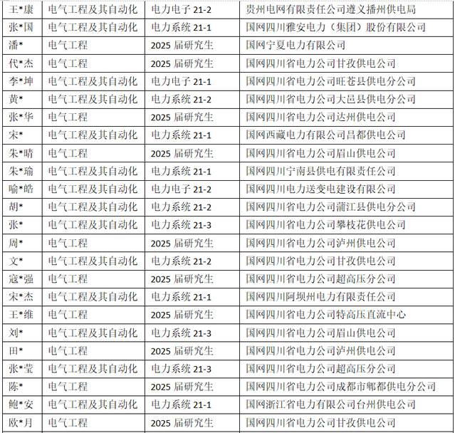 现将入职国网签约毕业生信息公布如下,祝贺各位同学开启人生新篇章,在工作岗位中奋发进取,再创辉煌,为国家能源建设发展作出新的更大贡献!