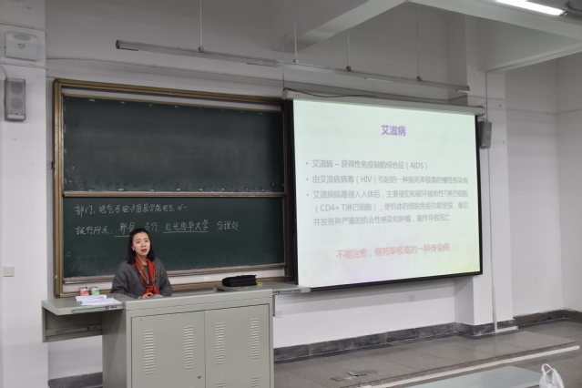 陈劲老师侧重于为学生普及目前艾滋病的主要发病群体,“艾滋病已经成为青少年的第二大死因。每天有近300例艾滋病相关病例死亡。”作为高校学生群体一员,陈劲老师要求各位同学须严肃对待,“残酷的数字统计说明一切——青年学生中HIV感染者主要为大中专院校学生(77.2%)为主。”