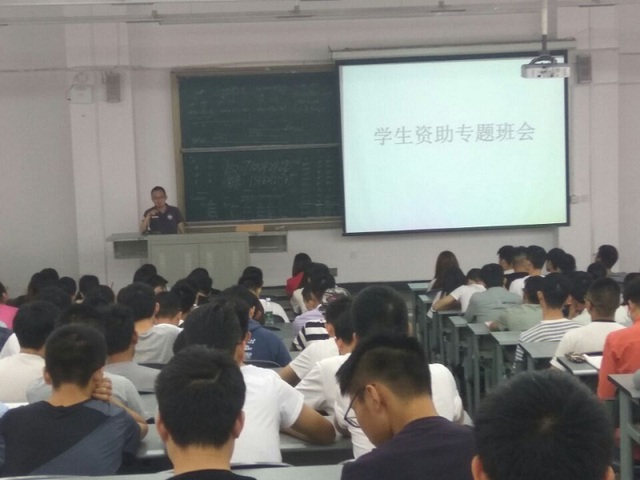 2015级通信工程和信息工程辅导员叶凯老师在会议中积极鼓励贫困学生采取贷款形式缴纳学费,“目前,国家开发银行覆盖的高校已达100%,发放贷款全国市场占90%以上。”在宣讲过程中,叶老师也结合本班学生实际进行分析。“我们班的部分同学可以通过此类方式极大减轻家庭负担,毕业三年内实现经济独立,再偿还本金。”