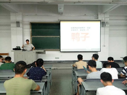 张帆老师以准毕业生即将面临找工作这一重要事件开门见山,强调了学生在找工作的层层环节中应保持积极主动的心态,“要以磨砺自己为目的,不怕打击、持之以恒。”