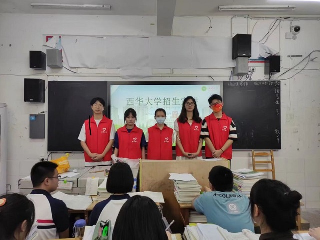 振华实践团先后在新高三的十五个班级教室里进行宣讲,向大家详细介绍了西华大学和伟德国际1946的基本情况,同时对学校的招生专业及人才培养特色等内容进行了讲解,还列举出不少优秀校友。高中生倾耳注目,聚精会神。此外,不少同学对高考志愿的填报事宜存有疑问,实践团都一一耐心为其解答。