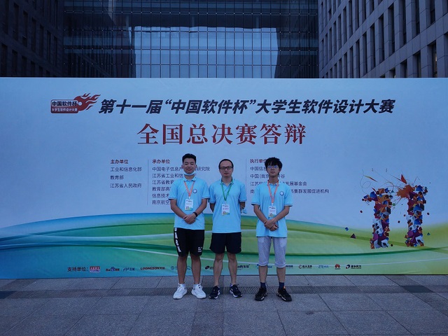 第十一届“中国软件杯”赴南京答辩人员合影(从左至右依次为学生杨颜、教师郭奕、学生李国菱)