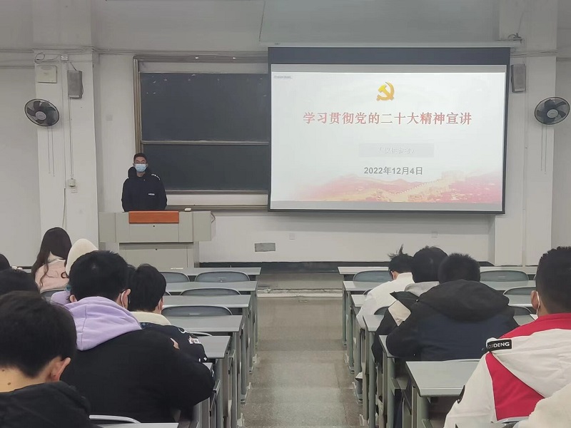 12月8日,学院学工办主任刘钊联系同学们的生活实际,为2022级电子信息类1-3班的同学们讲述了党的二十大对于国家、对于党、对于大学生的积极意义,宣讲在同学们的热烈掌声中结束。