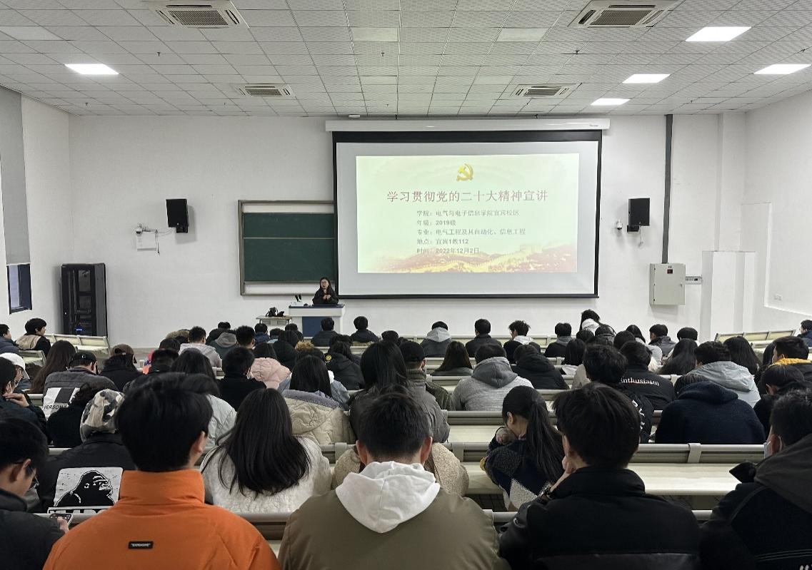 12月2日,由电气学院宜宾学生党支部书记兼辅导员邓艳梅主持为宜宾校区2019级学生党支部的同学们举办了学习贯彻党的二十大精神宣讲会,督促同学们坚定理想信念,明确责任担当,强化纪律作风。