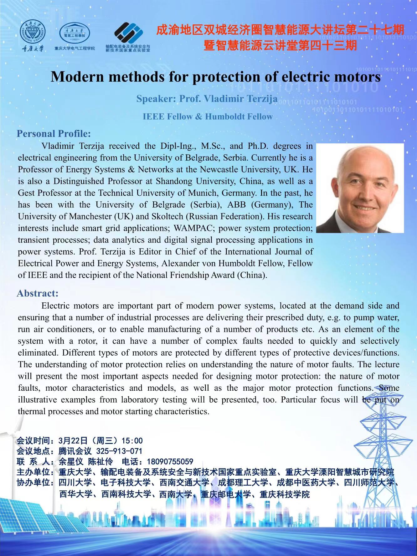报告题目:Modern methods for protection of electric motors