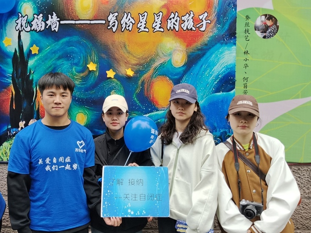 本次活动共有蓝骑行、快闪定格、手语舞表演、自闭症知识有奖问答、制作蓝丝带、黄色星星教学和祝福墙及祝福语录制等主要环节。