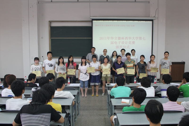 4月28日下午16:00,电气信息学院在6B308隆重召开了“2011年华立德杯西华大学第七届电子设计竞赛”颁奖仪式。出席颁奖仪式的嘉宾有本次比赛的主办方华立德科技有限公司总经理徐江等领导,电气信息学院党委书记董秀成,学院院长王军,学院党委副书记杨洪等学院领导和各班主任,以及在本次比赛中获奖的同学和2010级学生代表也参加了本次颁奖仪式。