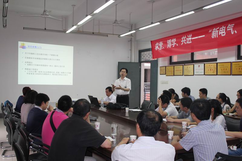 应学校邀请,2014年9月7日至9月11日,教育部“春晖计划”留日博士专家团成员张晓华副教授、陈洪源博士到我校进行学术指导和交流。张晓华副教授系日本广岛工业大学信息学院智能信息系统专业副教授,影像信息媒体学会和电子信息通信学会会员,主要研究方向包括数字内容制作、由拍摄图像生成手绘图像的研究以及3D建模及渲染的研究;陈洪源博士系阿尔卑斯电气公司主任研究员,中国留日同学会会长,第九届全国青联委员,全国青联留学人员联谊会理事兼副秘书长,欧美同学会海外名誉理事。从2011年至今,两位专家与我校教师联合申报春晖计划项目,已有14项获批。 2014年9月9日上午9:30,两位专家在6A301为我校师生分别作了题为“基于分片多项式模型与高斯核模型的文书图像中非均匀阴影的去除”和“车载通信技术的未来动向”的学术报告。报告会上,张晓华副教授首先对文书图像中非均匀阴影去除的研究背景及目的做了介绍,对一些相关的研究及提案作了分析;然后对分片多项式模型和高斯核模型两种方法去除文书图像中非均匀阴影做了对比;最后通过实验结果比较了不同方法的优劣。随后由陈洪源博士介绍了近距离通信技术的特点,对V2X(Vehicle to X)进行了诠释,其中包括V2V、V2I、V2X规格介绍、DSRC协议、WAVE、管理层面/数据层面等;最后分析了传统通信技术。电气信息学院副院长雷霞教授主持了本次报告,院长王军教授以及部分师生到场聆听了此次报告。 下午15点,张晓华副教授、陈洪源博士在6A301听了去年获批春晖计划项目老师的中期报告,并对今年申报的项目做了预评审。两位专家和到场师生就一些相关技术和学术问题进行了深入的交流和讨论。本次学术交流激起了在场师生们的强烈兴趣,整个会场气氛活跃,大家都表示获益匪浅。