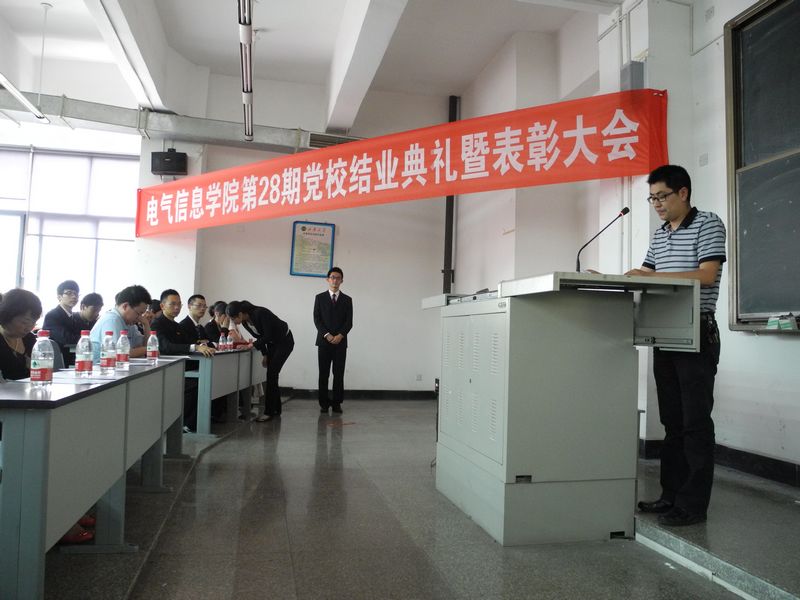 | 5月16日中午12:20分,电气信息学院第27期党校结业典礼暨表彰大会在6B208如期召开。参加本次结业典礼的领导和老师有电气信息学院党委副书记周川老师,学院学生党总支书记、委员,以及学院班主任老师。
