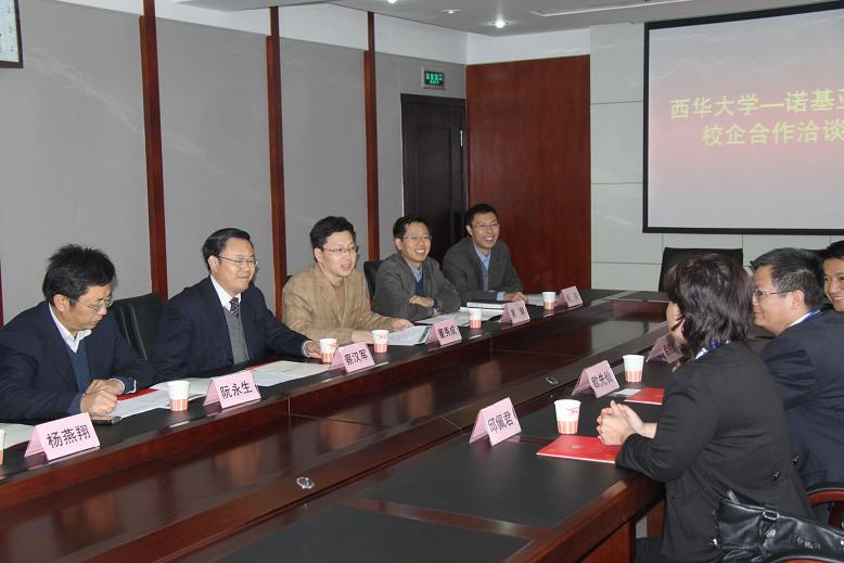 蔡汉军副校长首先代表学校对远道而来的欧经理一行表示欢迎,对诺基亚东莞分公司近年来给予我校关注和支持表示感谢,随后就我校发展历程、师资队伍、人才培养、学科专业等基本情况作了简要介绍。他希望校企双方充分发挥自身优势,在人才培养和课题研发上进一步加强校企之间的全面深入合作,实现学校与企业的双赢。