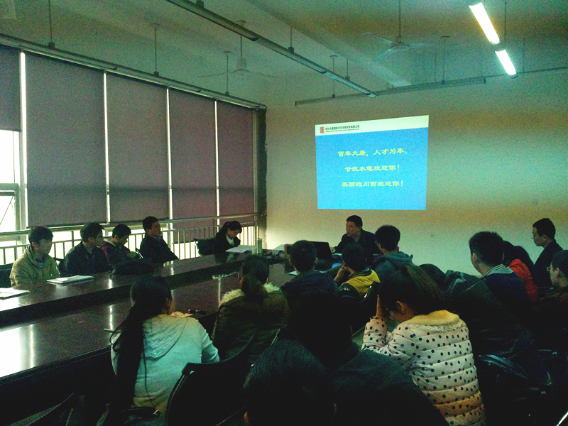 | 招聘会开始由甘孜水电开发有限公司人力专员杨女士对公司的情况做简单的介绍,并针对学院学生提出的疑问一一做了解答。随后,大唐国际甘孜水电开发有限公司人力资源部许主任就公司业绩、公司内部管理建设、生产经营规划、员工职业生涯、薪酬待遇等做了详细介绍,同时表示公司坚持“人才为本”的用人理念。同学们在整个招聘会开展过程中表现积极,给公司负责人留下了深刻印象。 |
