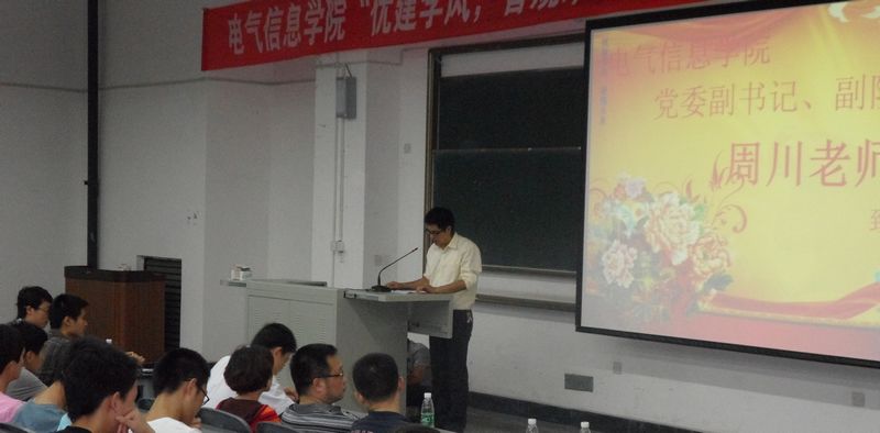65晚上7点,电气信息学院在6B308举行了“优建学风,智规未来”演讲比赛的决赛。学院党委书记副院长周川,院学工办主任郑宇,院团委书记刘秀丽和学院各年级的专职班主任出席了本次比赛并担任评委。
