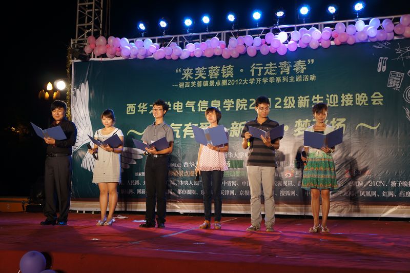 | 9月7日晚7点,电气信息学院 “心连心,梦飞扬” 2012级新生迎新晚会在明德广场隆重举行。晚会以欢迎学院2012级本研新生为主题。学院全体院领导,各办公室负责人,各系部教研室主任,兄弟学院团委学生会代表出席并观看了晚会。学院2012级本科和研究生全体新生共计700余名观看了晚会。 晚会首先由电气信息学院院长王军致辞,王院长代表学院向2012级新生的到来表示了热烈的欢迎,并对新生在未来大学学习生活提出了三点期望:一是做到志存高远,立志成才;二是勤学苦练,砥砺德行;三是健全心智,全面发展。鼓励新生不负父母和亲友的期望,不负老师和同学的期望,不负国家和社会的期望,用智慧、勤奋和热情,谱写自己大学的美丽人生。 廖磊老师代表新生班主任老师对新生做了致辞,在致辞中廖老师表示作为新生班主任将于新生一道过好大学生活的每一天,走好大学学习的每一步,以实际行动为自己拥有一段无悔值得回味的大学时光添上浓墨重彩的一笔。 来自2012级信息工程新生李阳洋同学代表新生做了发言,在发言中李阳洋表示将勤奋刻苦学习以优异的成绩向国家、父母、学校和老师汇报。 在随后的晚会中表演中,电气信息学院师生共同向观众们奉献了12个精彩的节目。其中学院新生班主任老师做了题为《我要的坚强》的诗歌朗诵,2012级新生代表向观众展示了温馨浪漫的手语舞,来自分团委学生会的同学为新生展示了部分电气信息学院历届电子类设计大赛中的获奖作品,以及歌舞小品类节目。整台晚会精彩不断,高潮迭起,掌声不息,让所有观众度过了一个美好、难忘的夜晚。 |