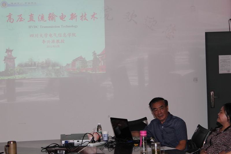 | 9月13日下午4:00,电气信息学院在6A301举行了高压直流输电新技术讲座学术报告,四川大学电气信息学院博士生导师李兴源教授应邀到我校作了题为“高压直流输电新技术——HVDC Transmission Technology”的学术报告,电气信息学院院长王军教授主持了本期学术交流会,学院党委书记董秀成教授,副院长雷霞教授及学院部分师生到场聆听了报告。 本次报告的主讲人李兴源教授是四川大学博士生导师,兼加拿大卡尔加里大学、英国巴斯大学、德国西门子公司、美国俄亥俄州立大学的客座教授,同时也是国家IEEE 高级会员,四川省学术和技术带头人,四川省专家评议(审)委员会委员。其主要研究方向是电力系统稳定和控制、配网自动化,已发表六十余篇SCI/EI国际顶级会议及期刊文章,获得多项发明专利和实用新型专利,并获得多项荣誉称号。 报告会上,李教授介绍了高压直流输电新技术,主要介绍了轻型直流输电技术、特高压直流输电技术,多端直流输电技术以及混合直流技术,并对各项技术的技术原理、适用场合、发展情况、以及所面临的技术挑战问题进行了详细的讲解。通过李教授的介绍,激起了师生们对高压直流新技术的浓厚兴趣,师生们踊跃发言,提出了自己的疑问和见解,这对今后大家进行相关项目的研究奠定了一定的基础,本次学术交流会取得圆满成功。
