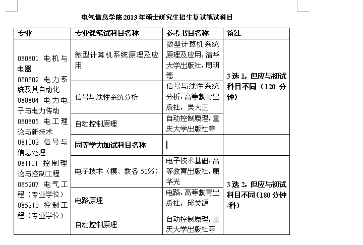 西华大学电气信息学院2013年接收硕士研究生调剂信息