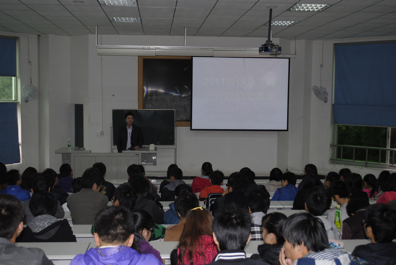 20111124下午2点电气信息学院在4A206召开2011级新生学习经验交流会,交流会由学院学生工作办公室主任郑宇老师主持。