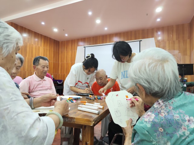 2:与养老院老人一起画扇